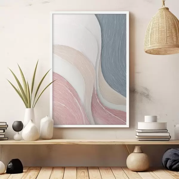 Poster Ondas abstractas ligeras en tonos rosa pálido y blanco grisáceo. Nr f46153