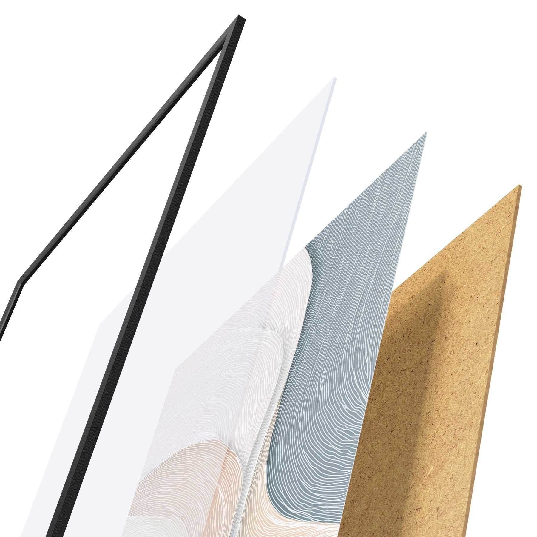 El póster consta de marco, plexiglás, imagen impresa y soporte de aglomerado. El póster puede colgarse inmediatamente en la pared gracias a los soportes de la parte posterior.