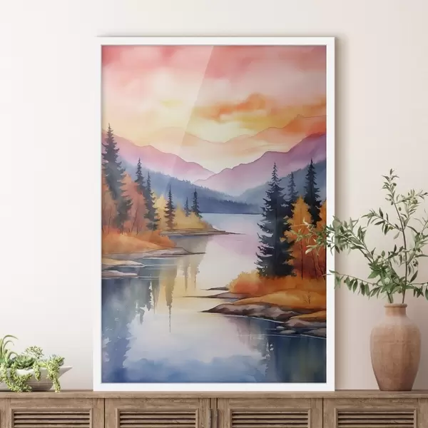 Poster Paisaje otoñal junto al lago con un cielo luminoso Nr f46155