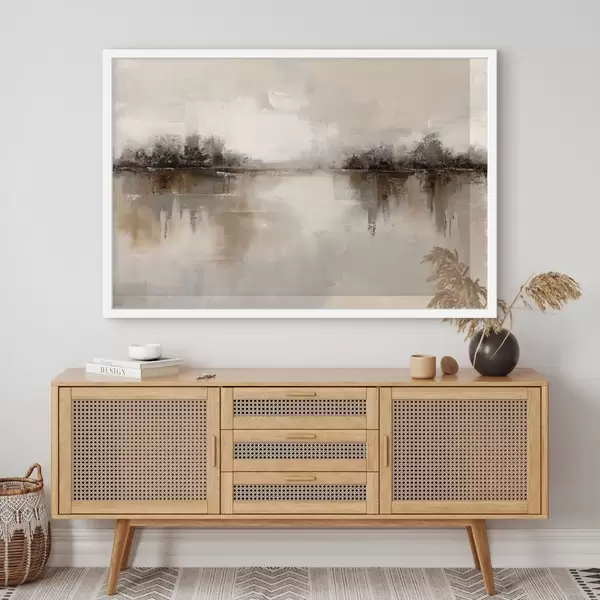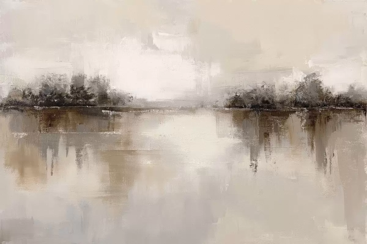 Poster Paisaje suave con un lago en cálidos tonos beige y gris Nr f46158