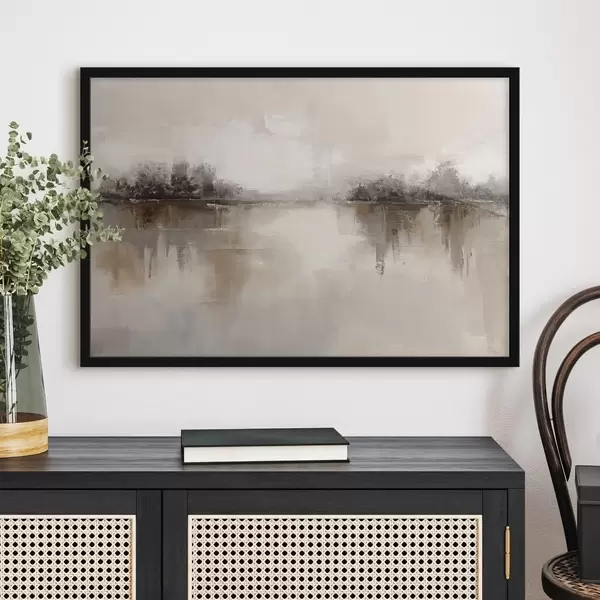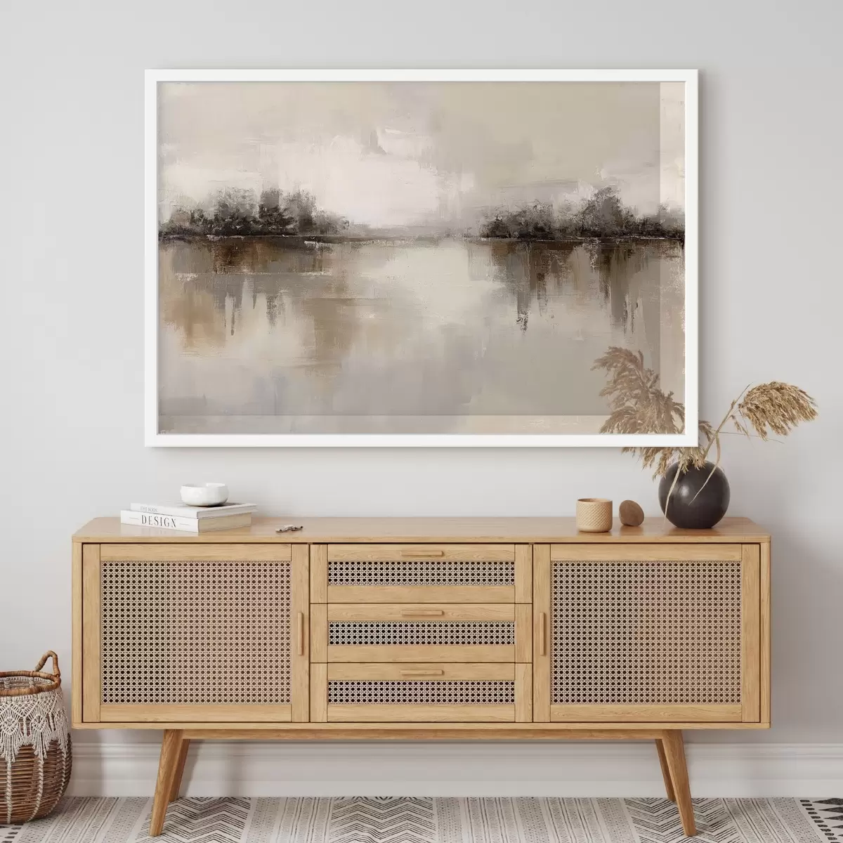 Poster Paisaje suave con un lago en cálidos tonos beige y gris f46158