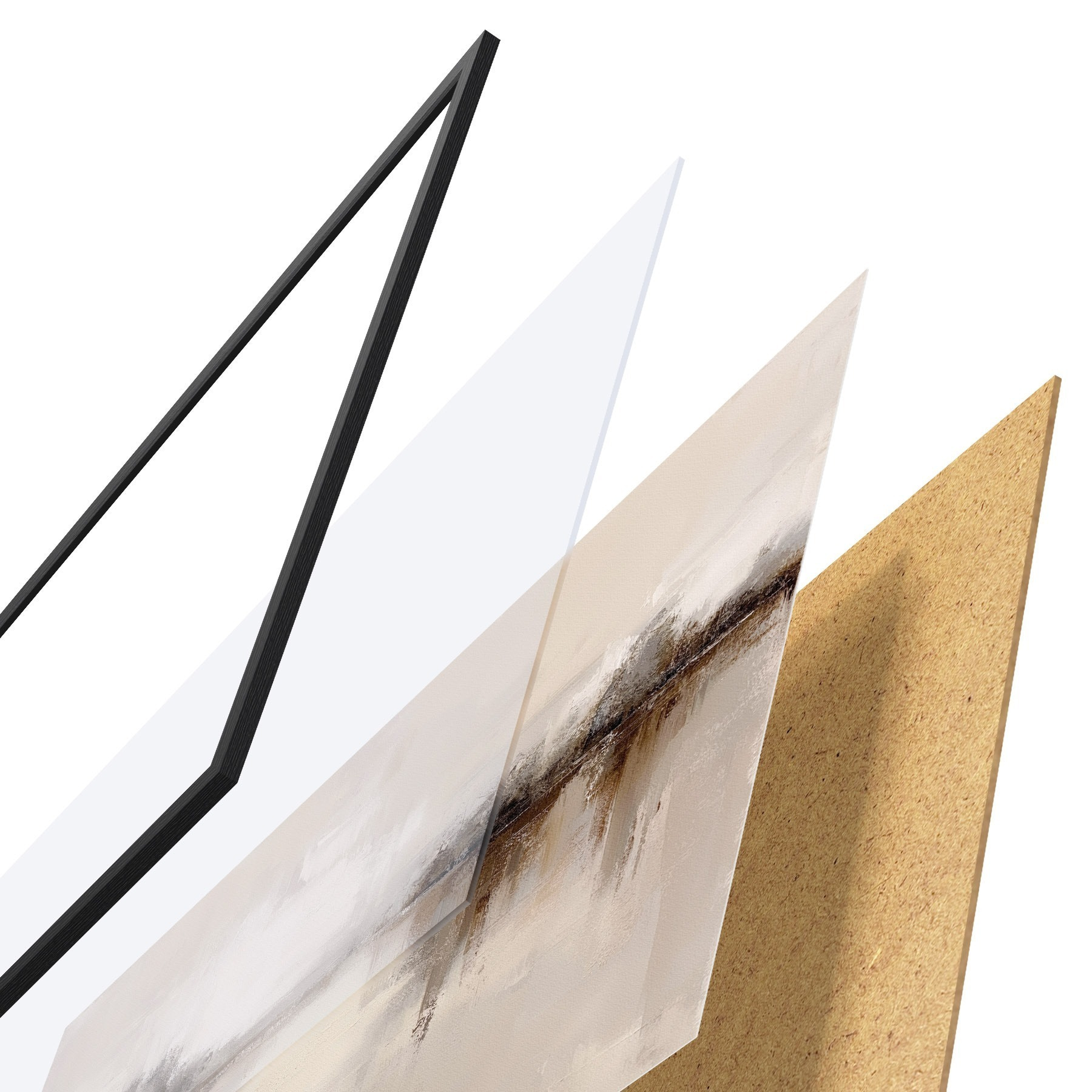 El póster consta de marco, plexiglás, imagen impresa y soporte de aglomerado. El póster puede colgarse inmediatamente en la pared gracias a los soportes de la parte posterior.