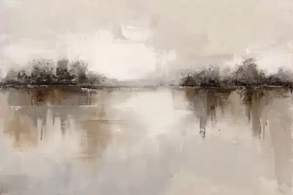 Poster Paisaje suave con un lago en cálidos tonos beige y gris Nr f46158