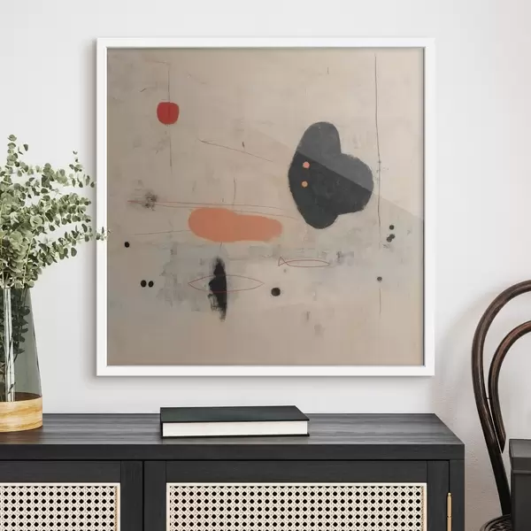 Poster Dibujo abstracto minimalista con detalles en negro y coral Nr f46159
