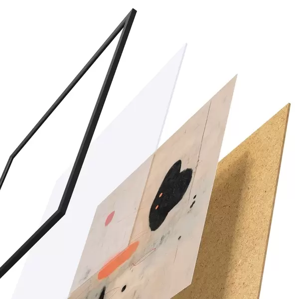 El póster consta de marco, plexiglás, imagen impresa y soporte de aglomerado. El póster puede colgarse inmediatamente en la pared gracias a los soportes de la parte posterior.