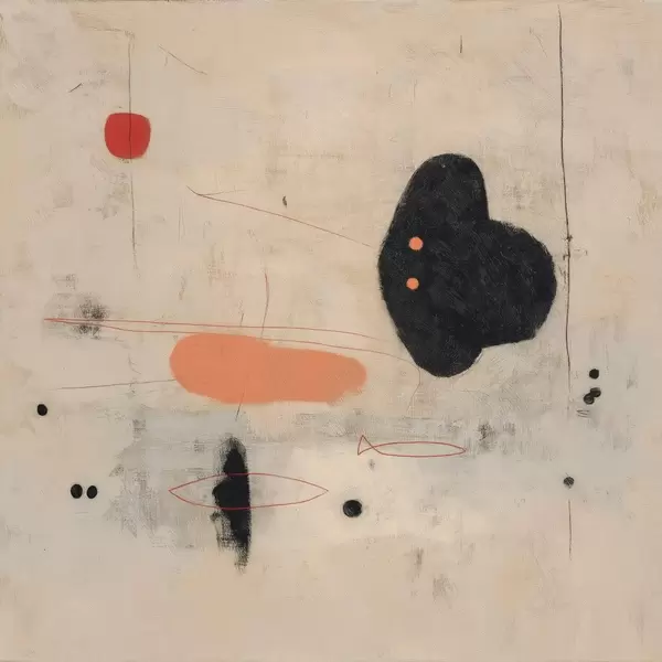Poster Dibujo abstracto minimalista con detalles en negro y coral Nr f46159