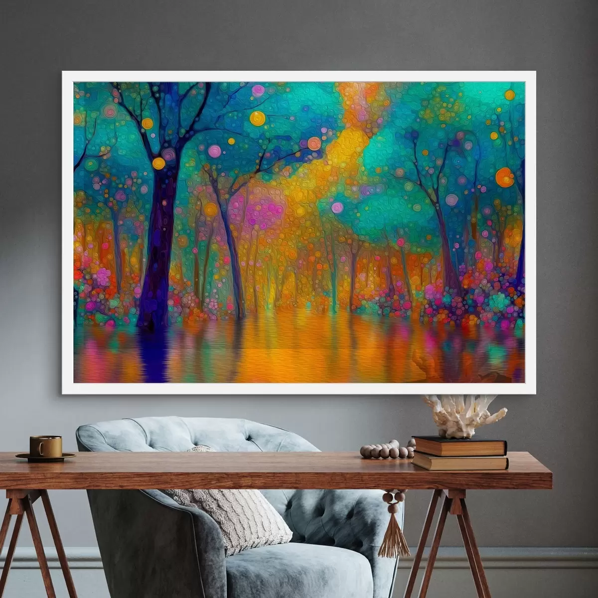 Poster Bosque fantástico y vívido con reflejos en el agua f46171
