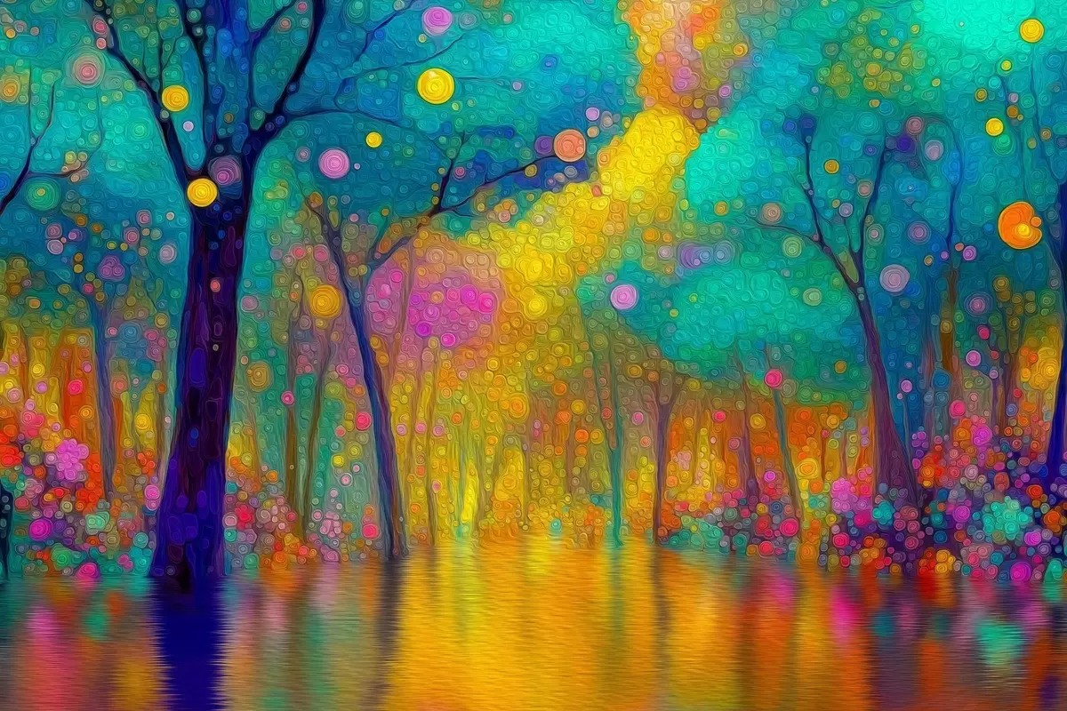 Poster Bosque fantástico y vívido con reflejos en el agua Nr f46171