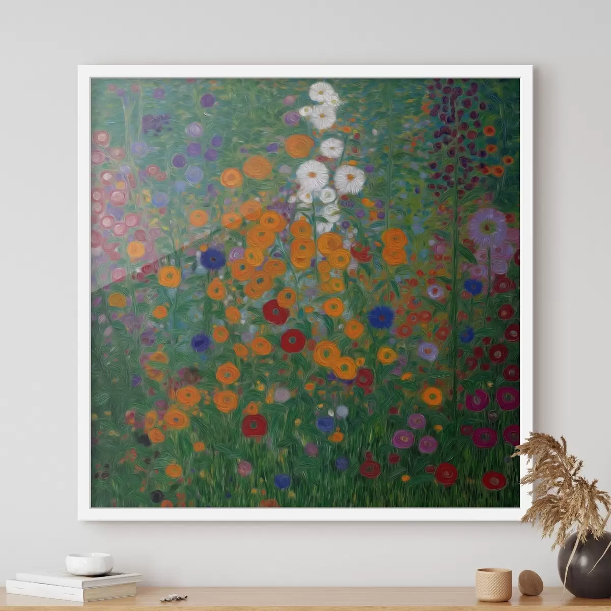 Poster Campo de flores coloridas con detalles en blanco f46172