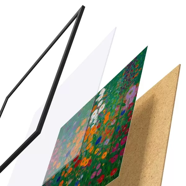 El póster consta de marco, plexiglás, imagen impresa y soporte de aglomerado. El póster puede colgarse inmediatamente en la pared gracias a los soportes de la parte posterior.