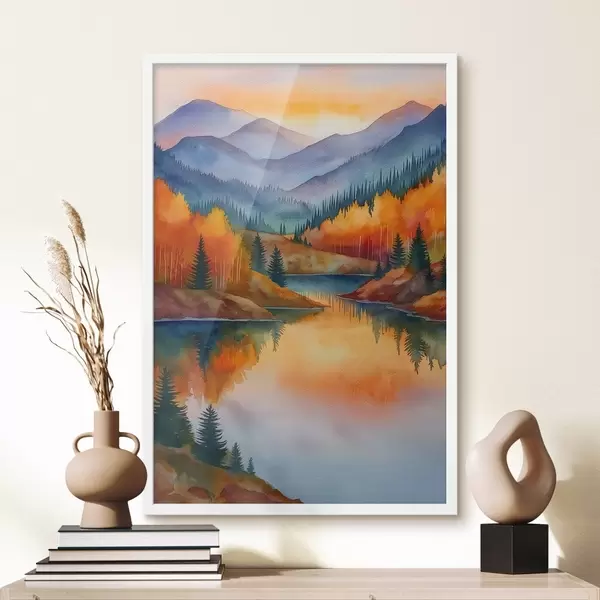 Poster Paisaje otoñal con montañas reflejadas en un lago tranquilo Nr f46174