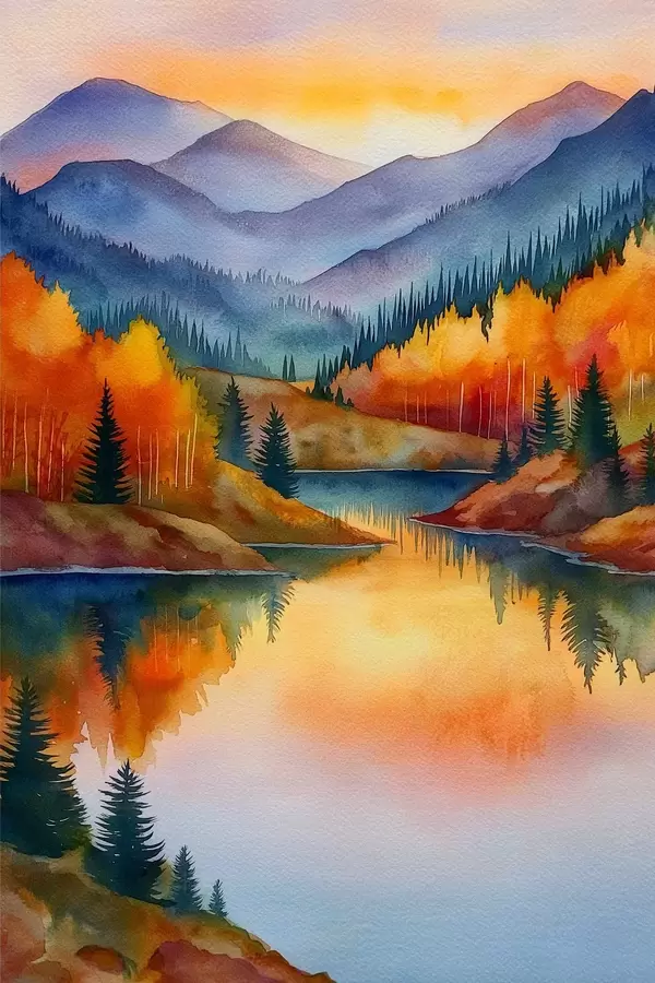 Poster Paisaje otoñal con montañas reflejadas en un lago tranquilo Nr f46174