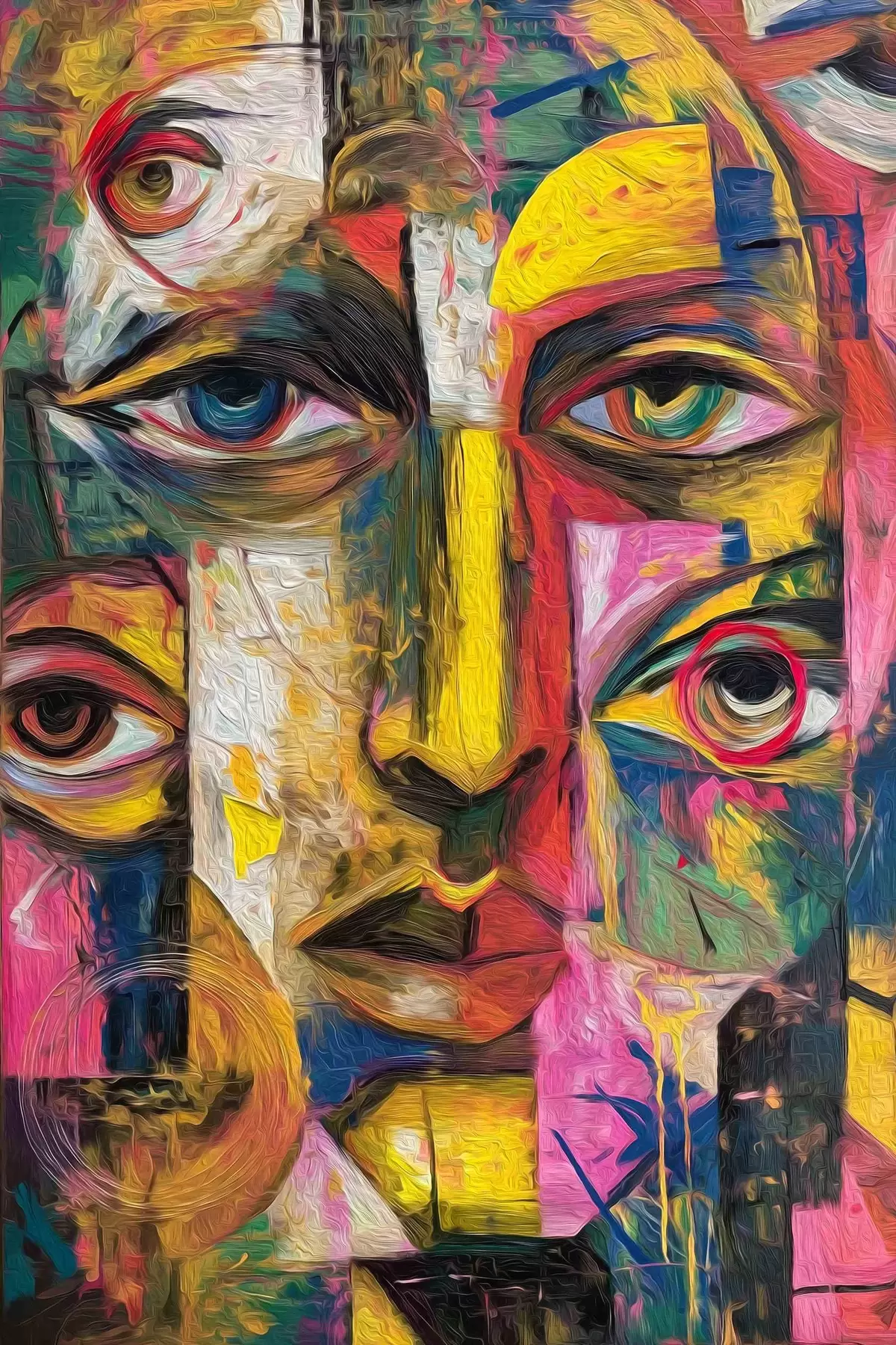 Poster Rostro abstracto con formas geométricas brillantes Nr f46175