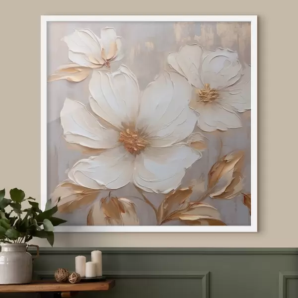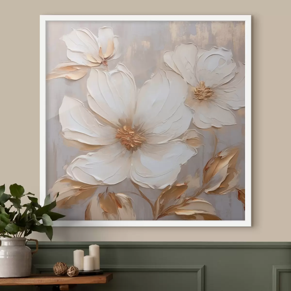 Poster Grandes flores texturizadas con pinceladas en una paleta de colores cálidos f46176