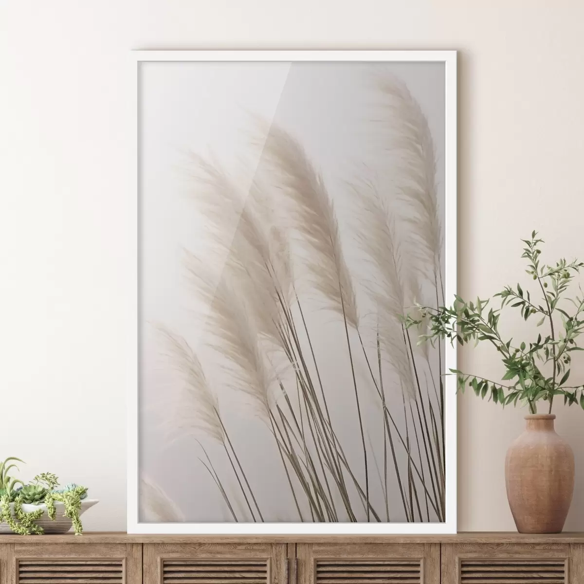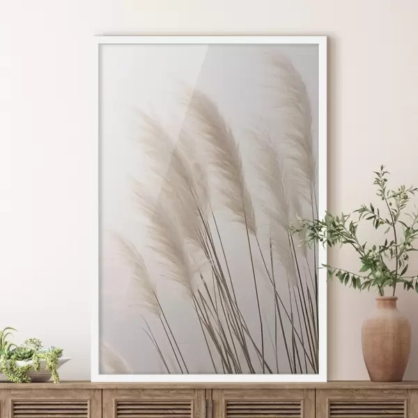 Poster Hierbas ligeras con copas esponjosas sobre un fondo pálido f46179