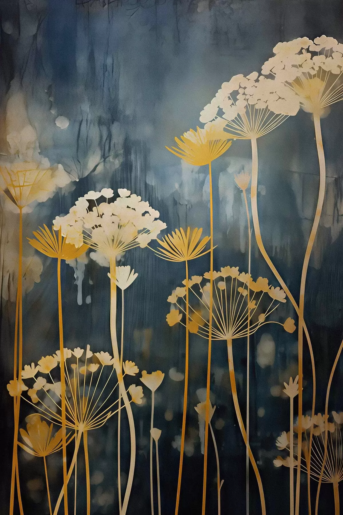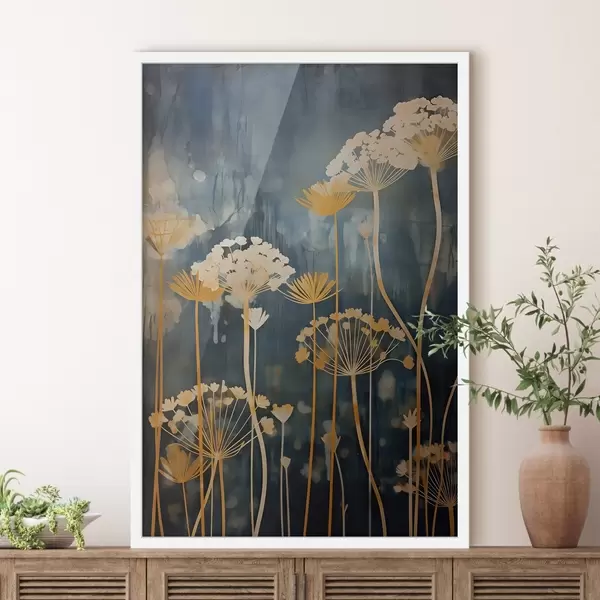 Poster Flores estilizadas con tallos finos sobre fondo oscuro Nr f46188