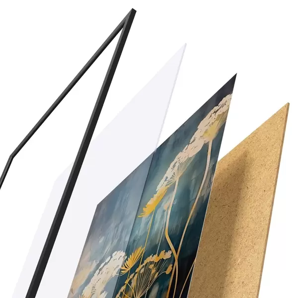 El póster consta de marco, plexiglás, imagen impresa y soporte de aglomerado. El póster puede colgarse inmediatamente en la pared gracias a los soportes de la parte posterior.