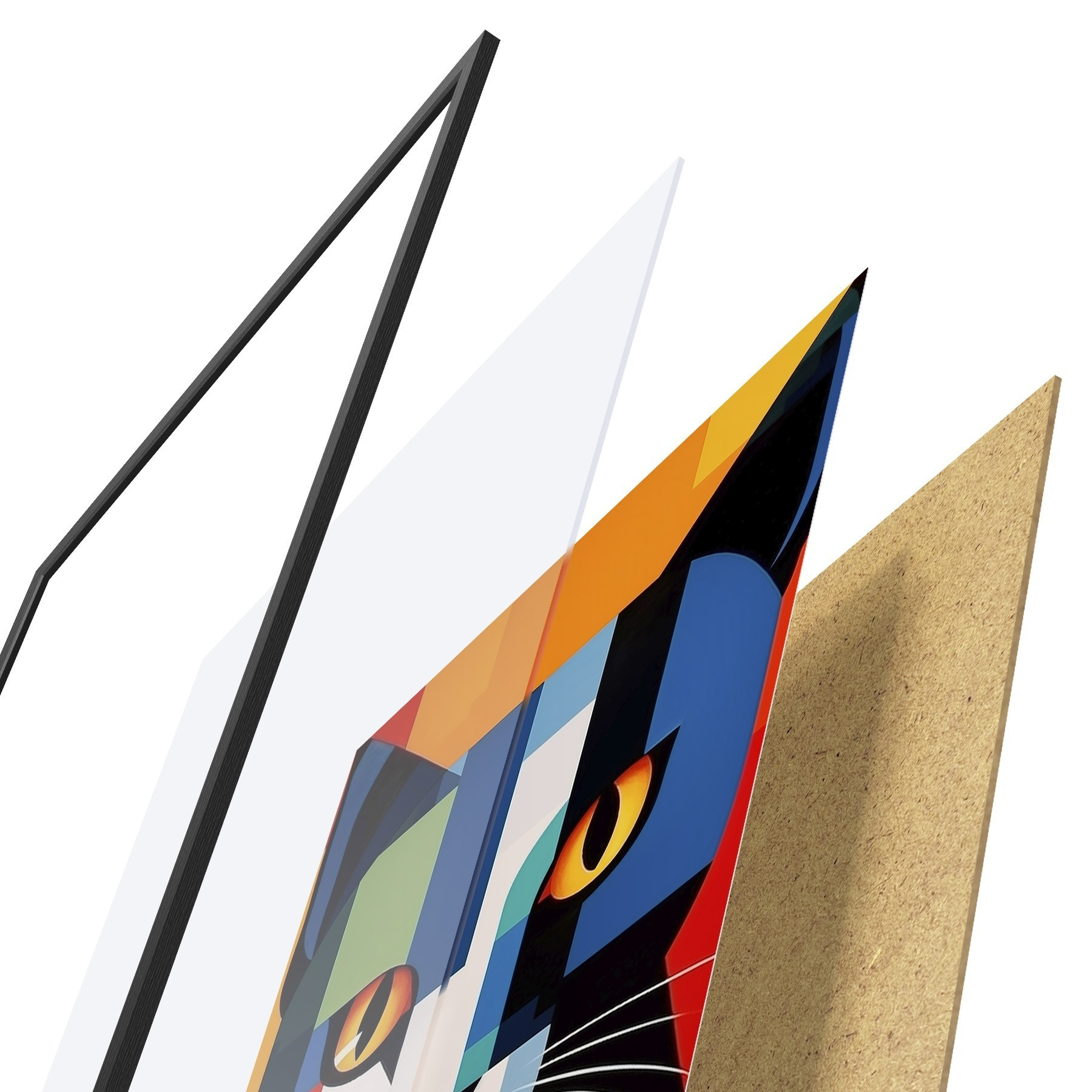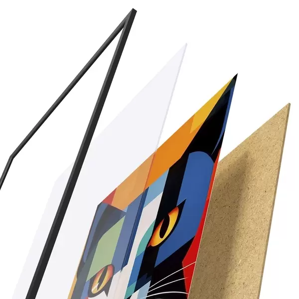 El póster consta de marco, plexiglás, imagen impresa y soporte de aglomerado. El póster puede colgarse inmediatamente en la pared gracias a los soportes de la parte posterior.