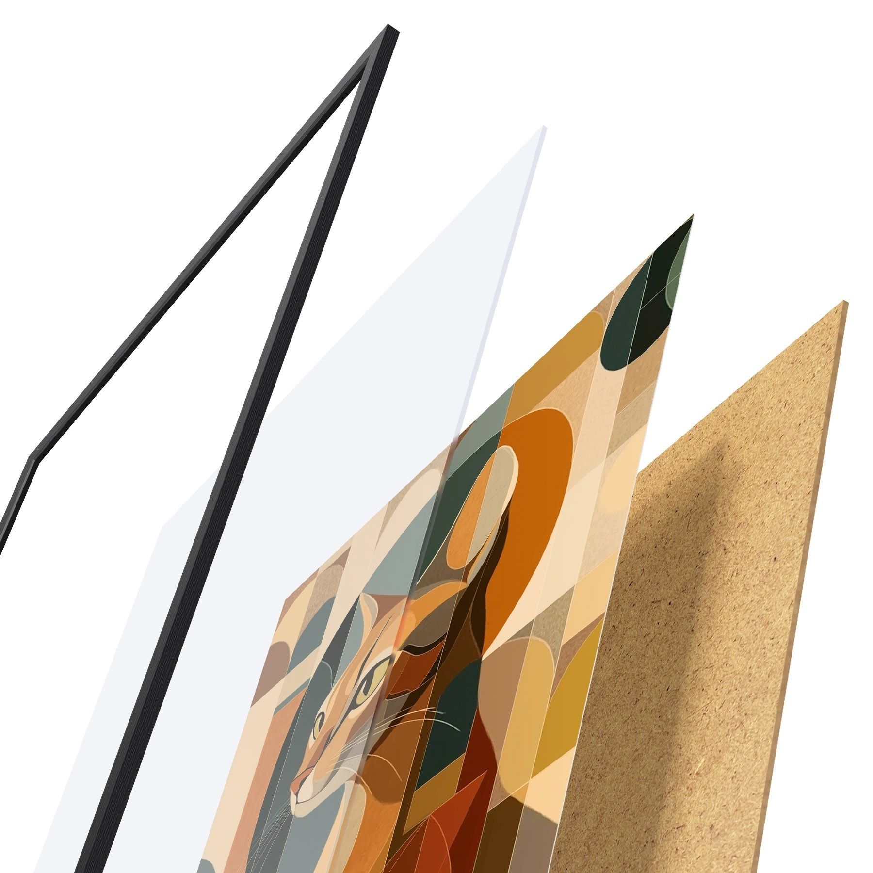 El póster consta de marco, plexiglás, imagen impresa y soporte de aglomerado. El póster puede colgarse inmediatamente en la pared gracias a los soportes de la parte posterior.