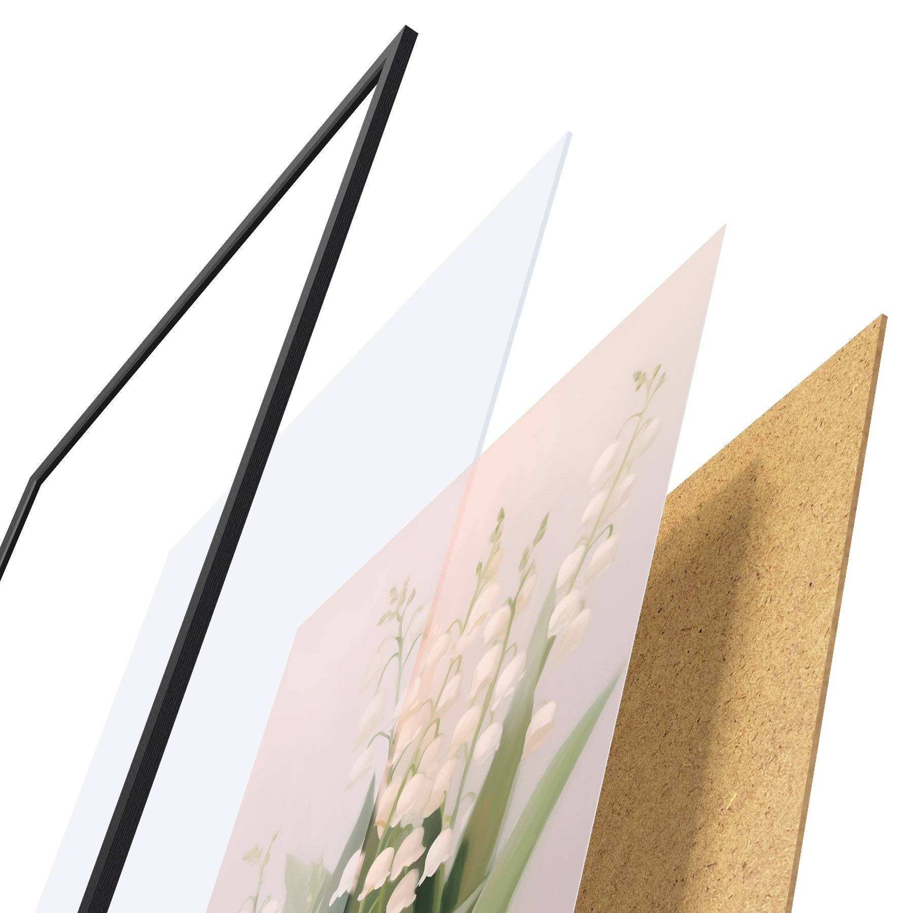 El póster consta de marco, plexiglás, imagen impresa y soporte de aglomerado. El póster puede colgarse inmediatamente en la pared gracias a los soportes de la parte posterior.