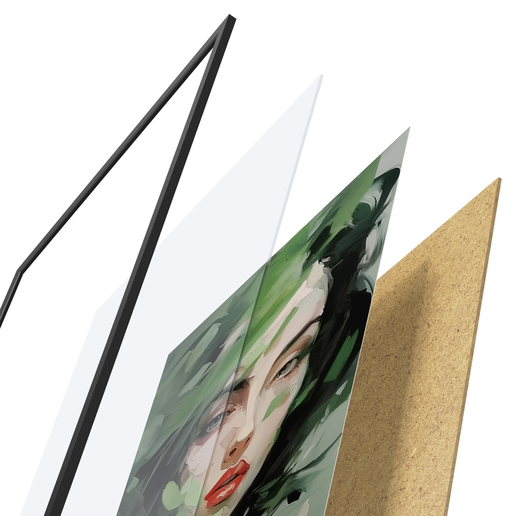 El póster consta de marco, plexiglás, imagen impresa y soporte de aglomerado. El póster puede colgarse inmediatamente en la pared gracias a los soportes de la parte posterior.
