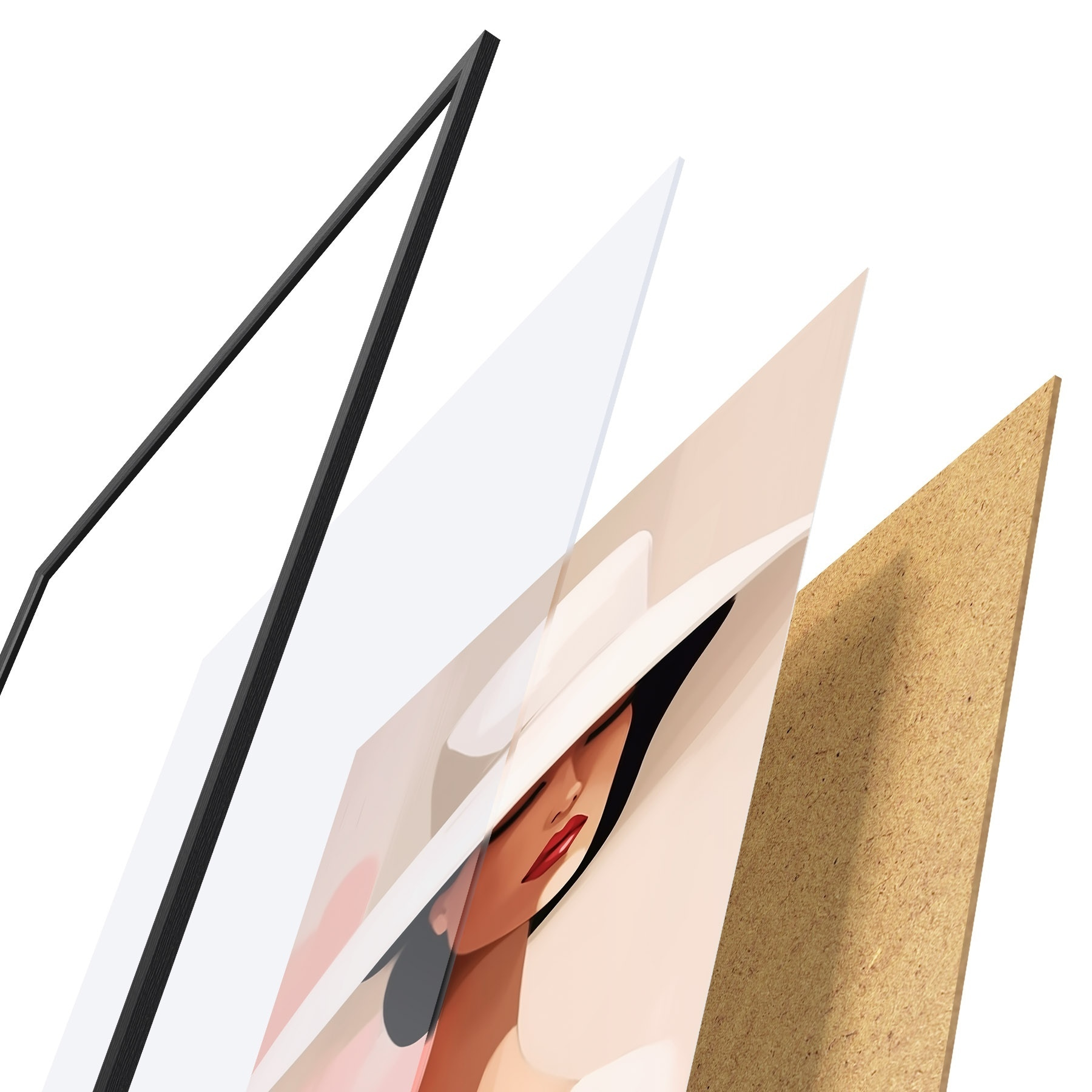 El póster consta de marco, plexiglás, imagen impresa y soporte de aglomerado. El póster puede colgarse inmediatamente en la pared gracias a los soportes de la parte posterior.