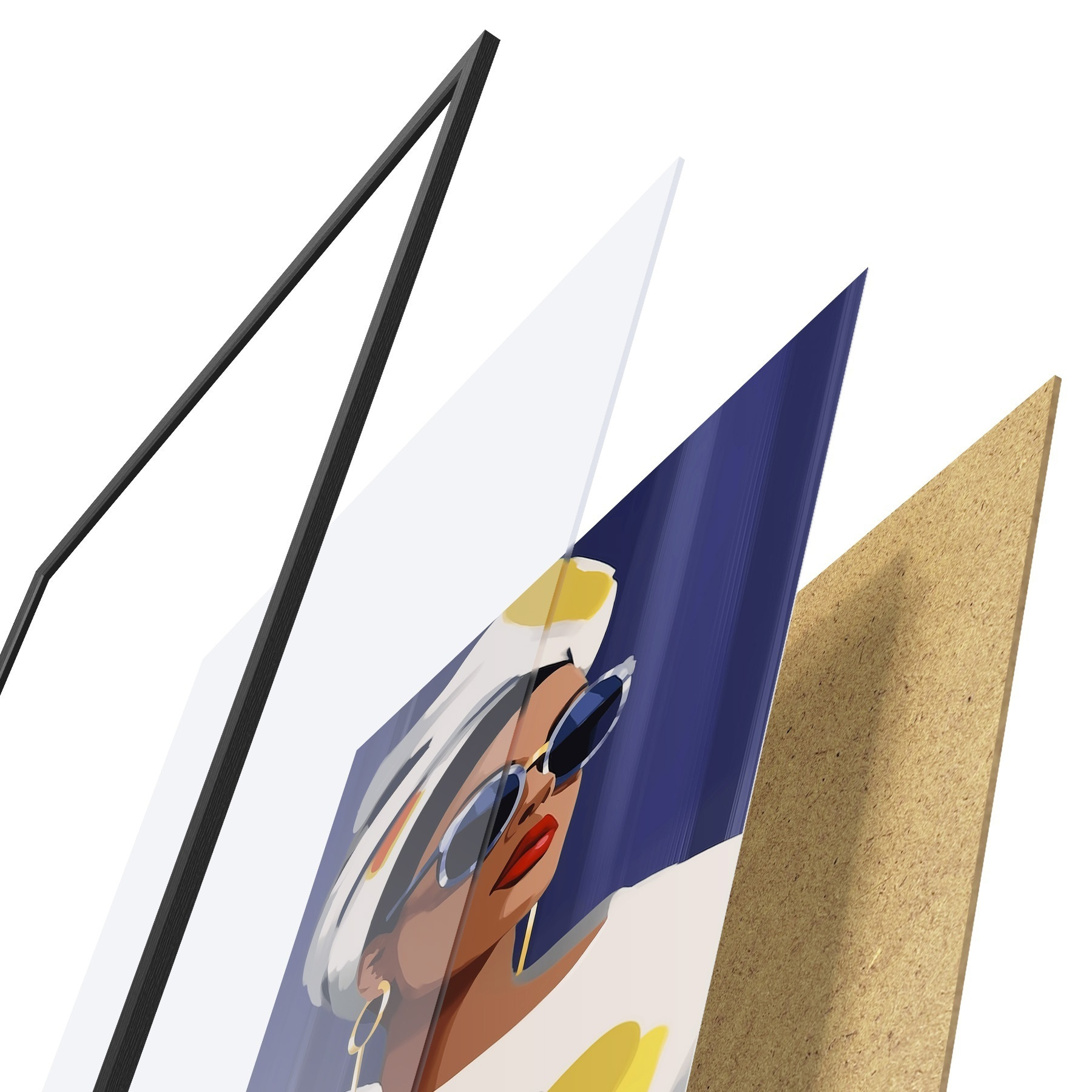 El póster consta de marco, plexiglás, imagen impresa y soporte de aglomerado. El póster puede colgarse inmediatamente en la pared gracias a los soportes de la parte posterior.