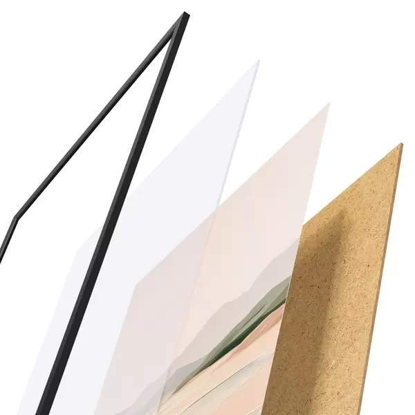 El póster consta de marco, plexiglás, imagen impresa y soporte de aglomerado. El póster puede colgarse inmediatamente en la pared gracias a los soportes de la parte posterior.