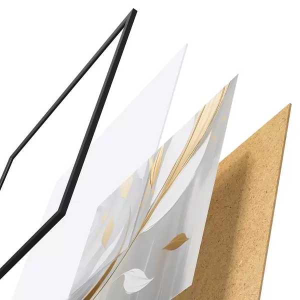 El póster consta de marco, plexiglás, imagen impresa y soporte de aglomerado. El póster puede colgarse inmediatamente en la pared gracias a los soportes de la parte posterior.