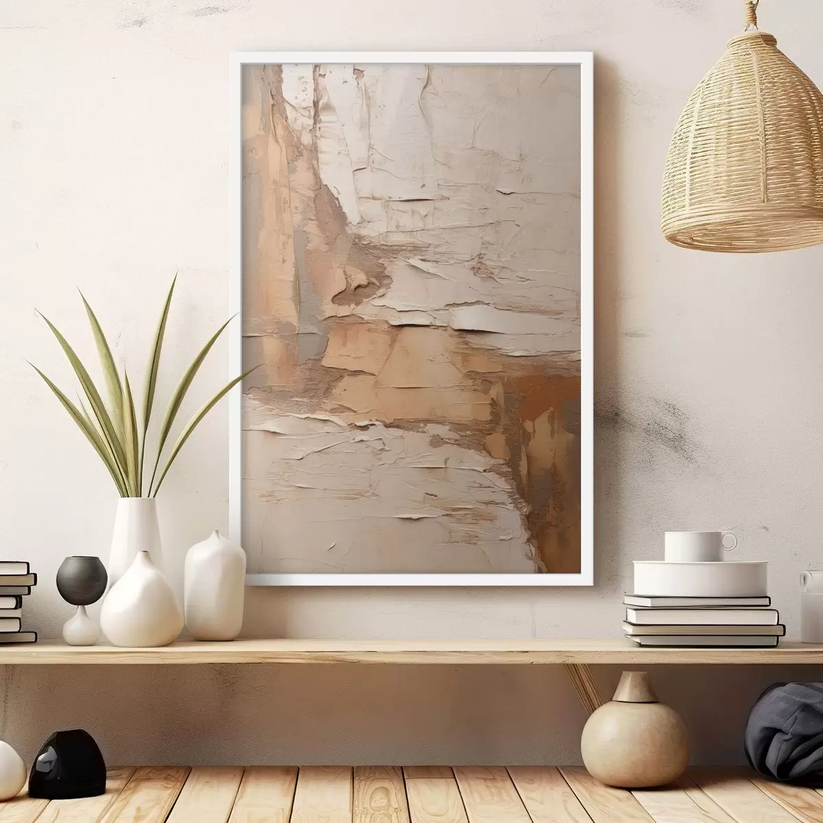 Poster Pintura abstracta con pinceladas gruesas, tonos beige y marrones, superficie texturizada, paleta de colores neutros. f46273