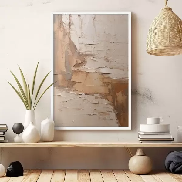 Poster Pintura abstracta con pinceladas gruesas, tonos beige y marrones, superficie texturizada, paleta de colores neutros. Nr f46273