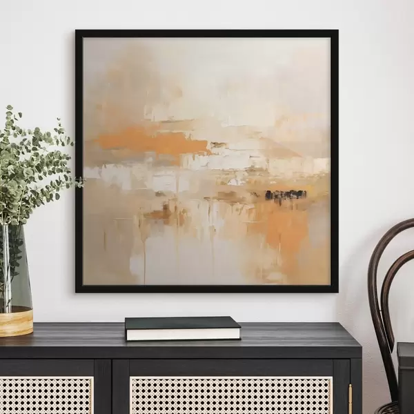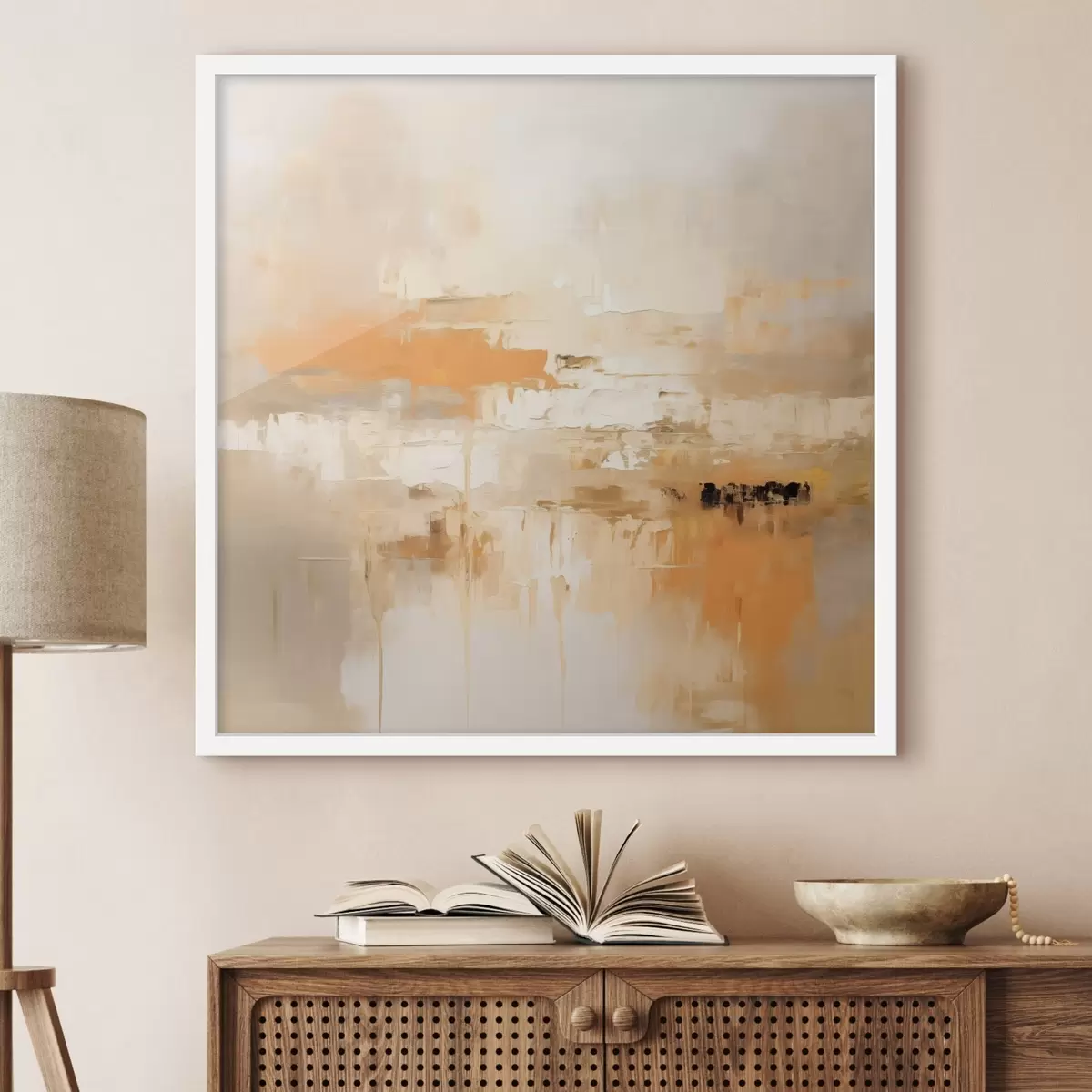 Poster Abstracción paisajística en estilo óleo con tonos naranjas y beiges Nr f46314
