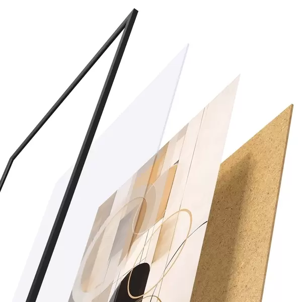 El póster consta de marco, plexiglás, imagen impresa y soporte de aglomerado. El póster puede colgarse inmediatamente en la pared gracias a los soportes de la parte posterior.