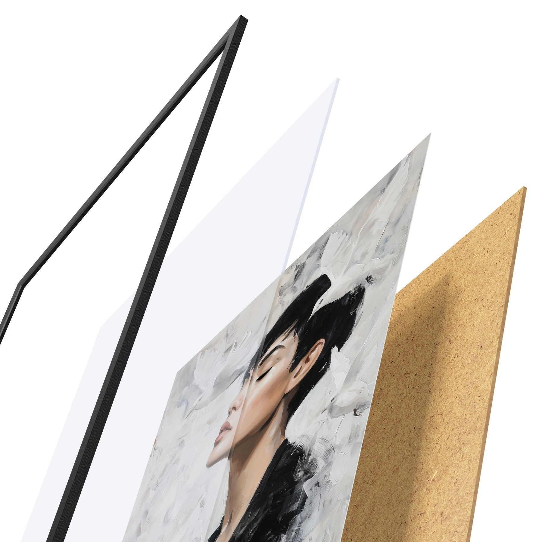 El póster consta de marco, plexiglás, imagen impresa y soporte de aglomerado. El póster puede colgarse inmediatamente en la pared gracias a los soportes de la parte posterior.