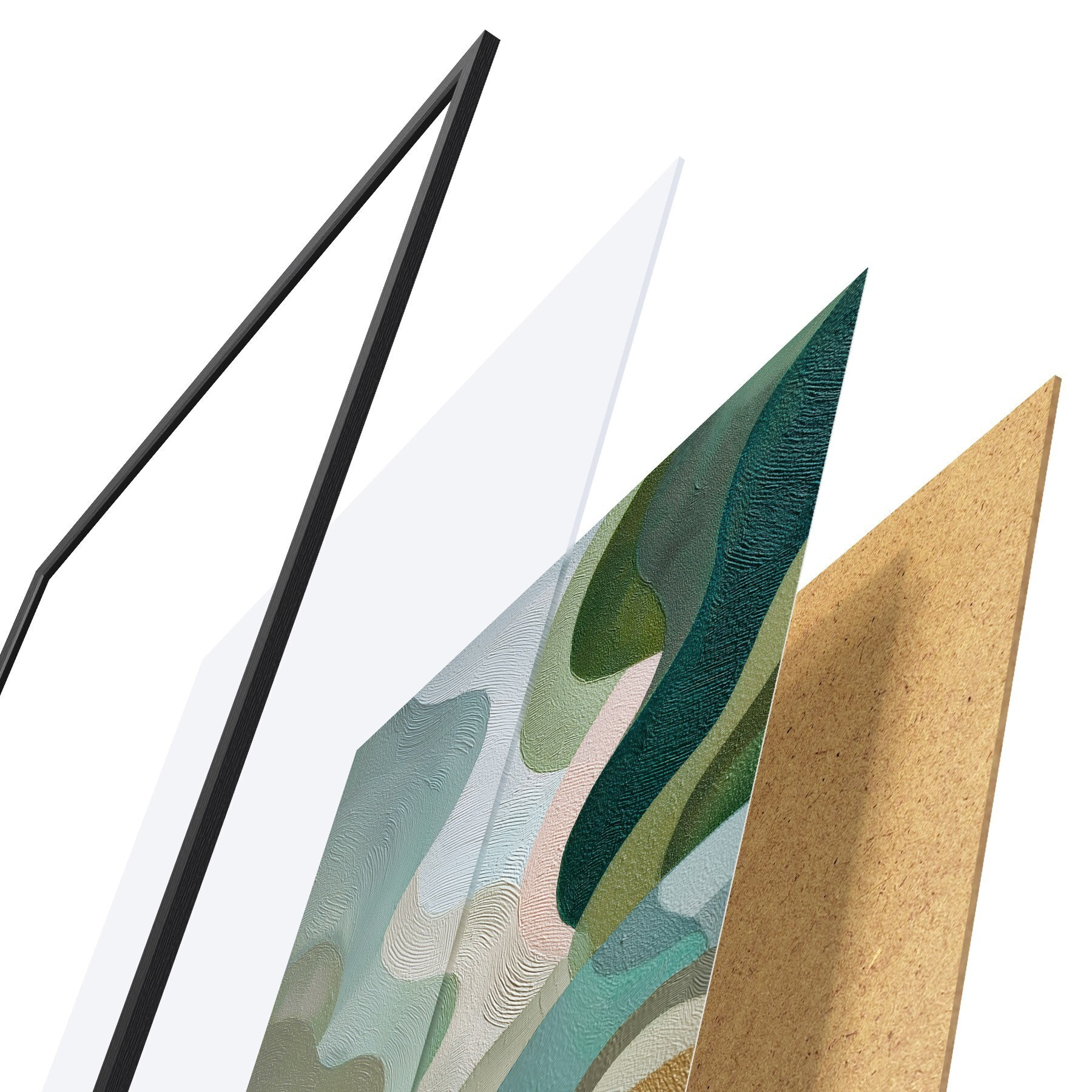 El póster consta de marco, plexiglás, imagen impresa y soporte de aglomerado. El póster puede colgarse inmediatamente en la pared gracias a los soportes de la parte posterior.
