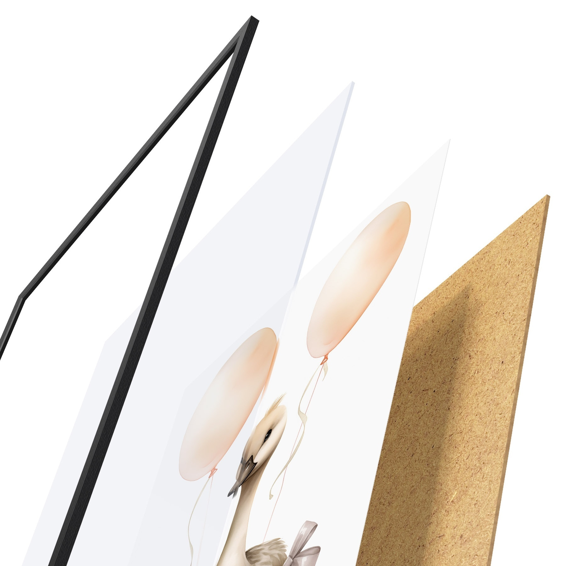 El póster consta de marco, plexiglás, imagen impresa y soporte de aglomerado. El póster puede colgarse inmediatamente en la pared gracias a los soportes de la parte posterior.