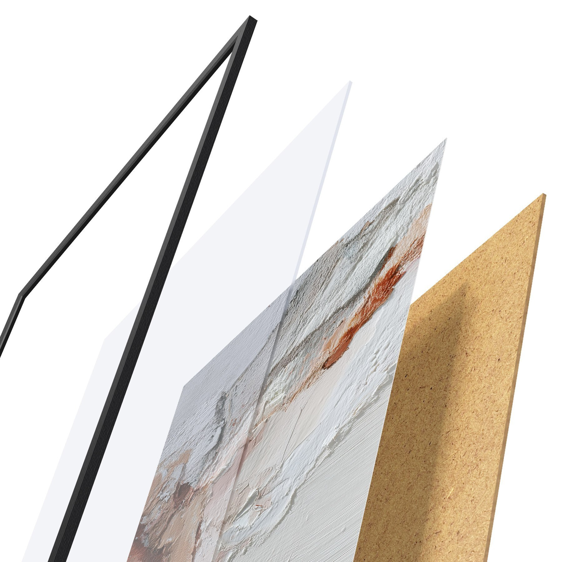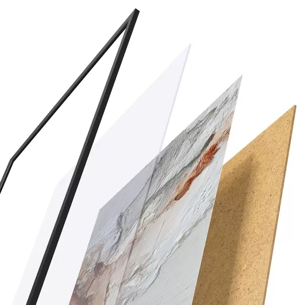 El póster consta de marco, plexiglás, imagen impresa y soporte de aglomerado. El póster puede colgarse inmediatamente en la pared gracias a los soportes de la parte posterior.