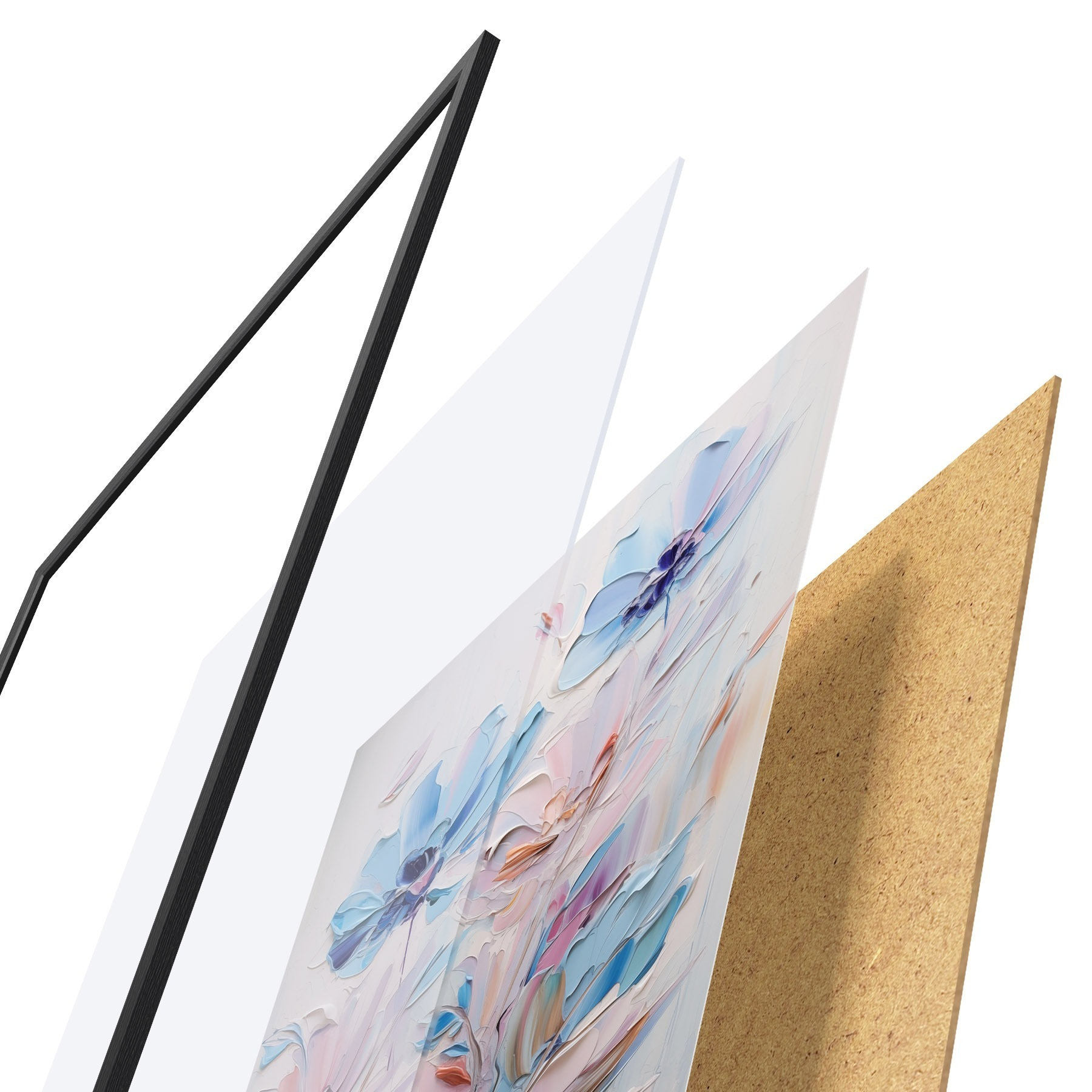 El póster consta de marco, plexiglás, imagen impresa y soporte de aglomerado. El póster puede colgarse inmediatamente en la pared gracias a los soportes de la parte posterior.
