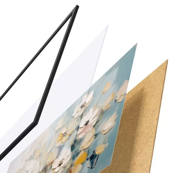 El póster consta de marco, plexiglás, imagen impresa y soporte de aglomerado. El póster puede colgarse inmediatamente en la pared gracias a los soportes de la parte posterior.