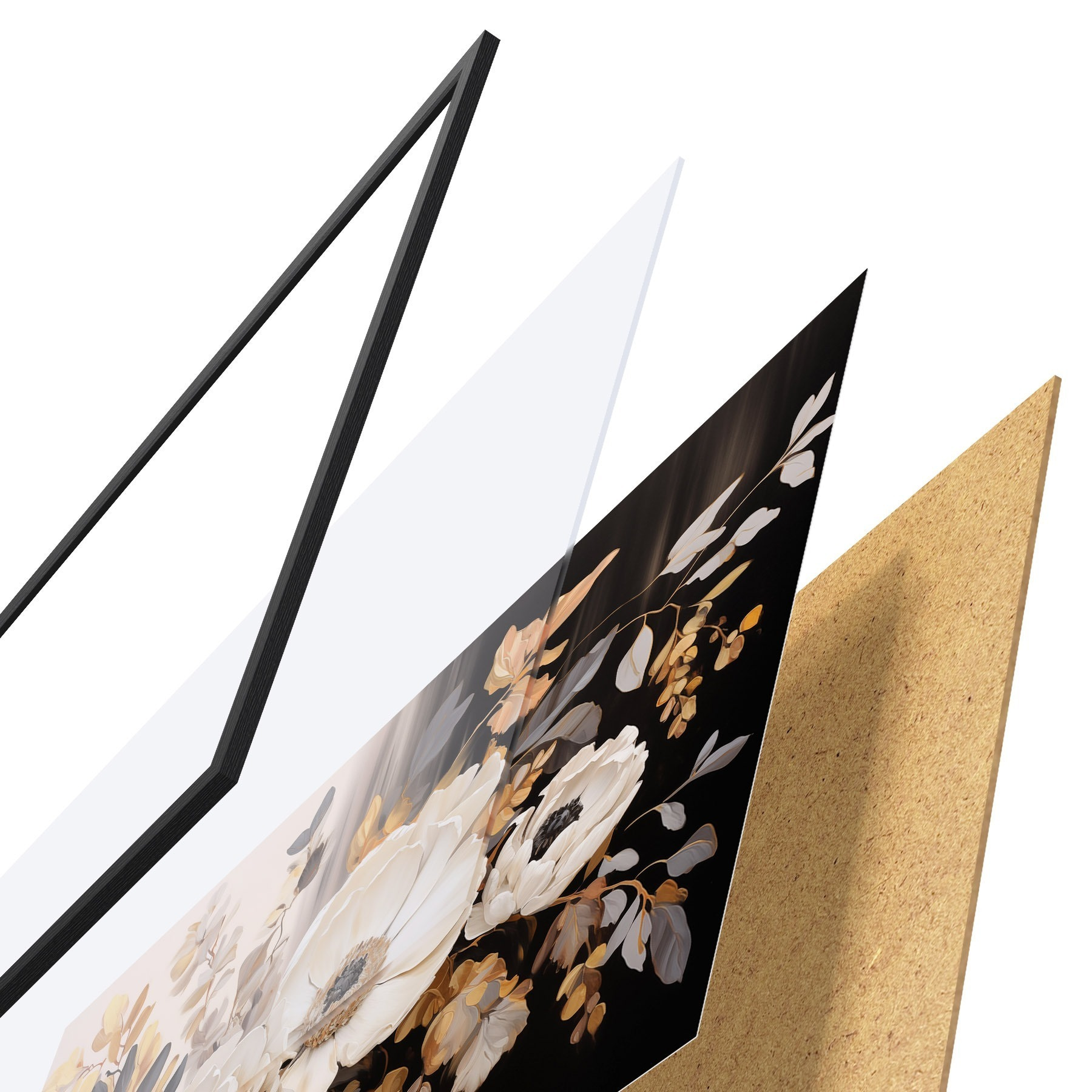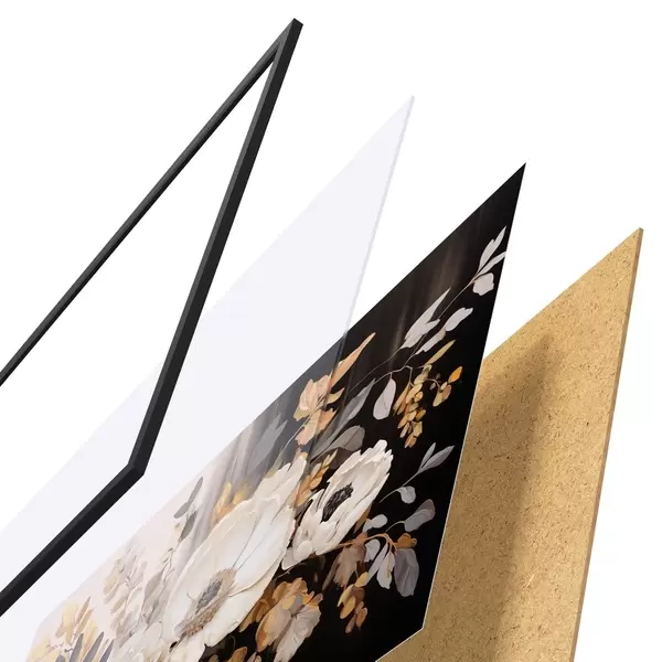 El póster consta de marco, plexiglás, imagen impresa y soporte de aglomerado. El póster puede colgarse inmediatamente en la pared gracias a los soportes de la parte posterior.