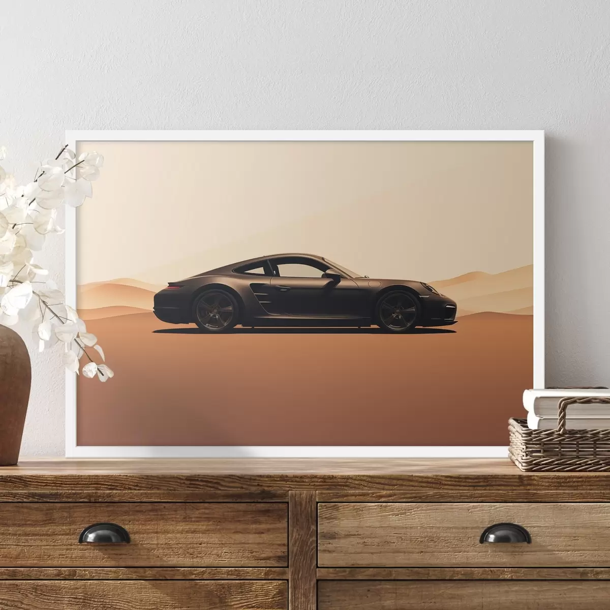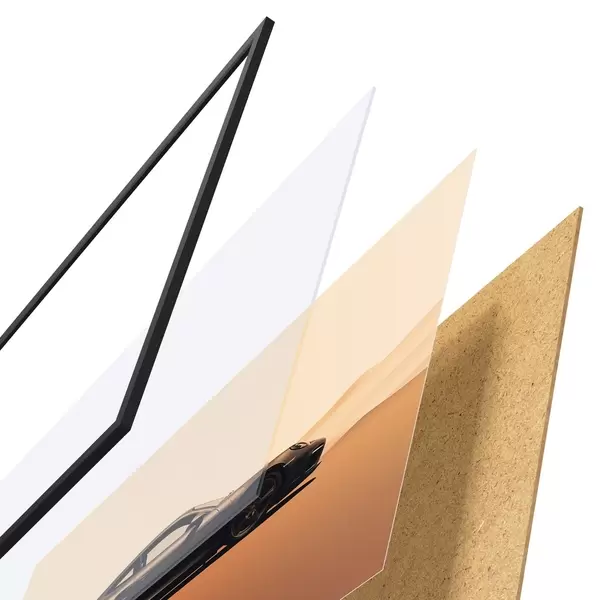 El póster consta de marco, plexiglás, imagen impresa y soporte de aglomerado. El póster puede colgarse inmediatamente en la pared gracias a los soportes de la parte posterior.