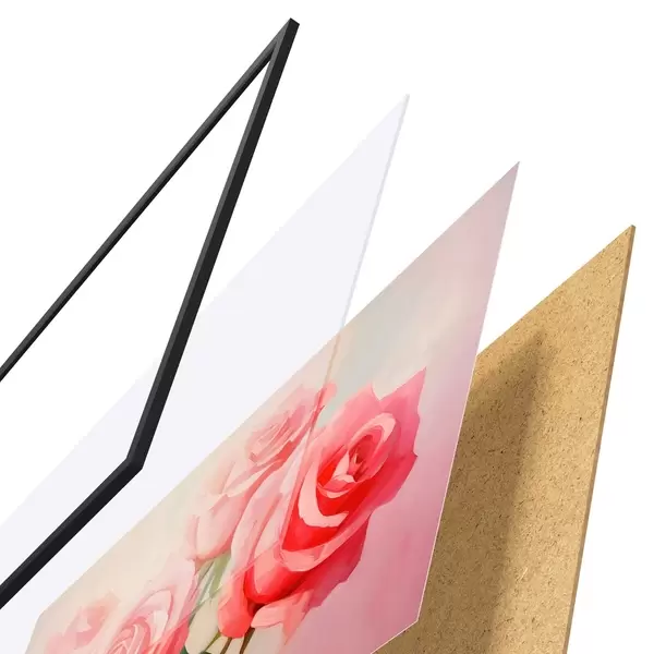 El póster consta de marco, plexiglás, imagen impresa y soporte de aglomerado. El póster puede colgarse inmediatamente en la pared gracias a los soportes de la parte posterior.