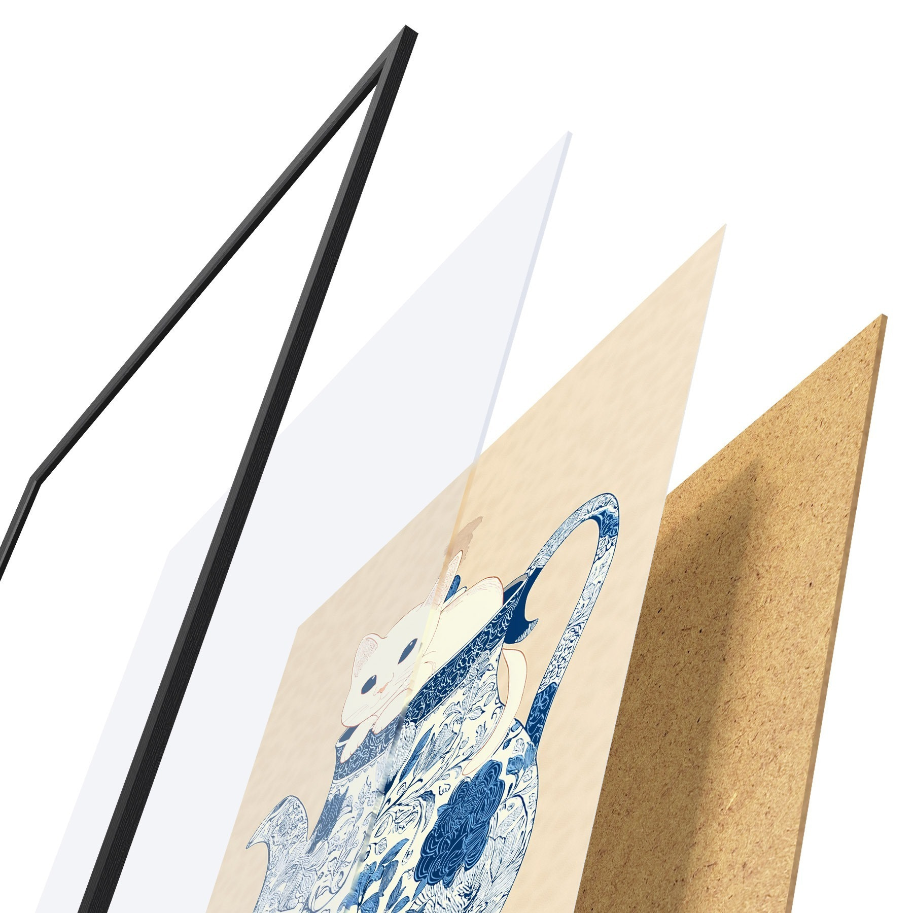 El póster consta de marco, plexiglás, imagen impresa y soporte de aglomerado. El póster puede colgarse inmediatamente en la pared gracias a los soportes de la parte posterior.