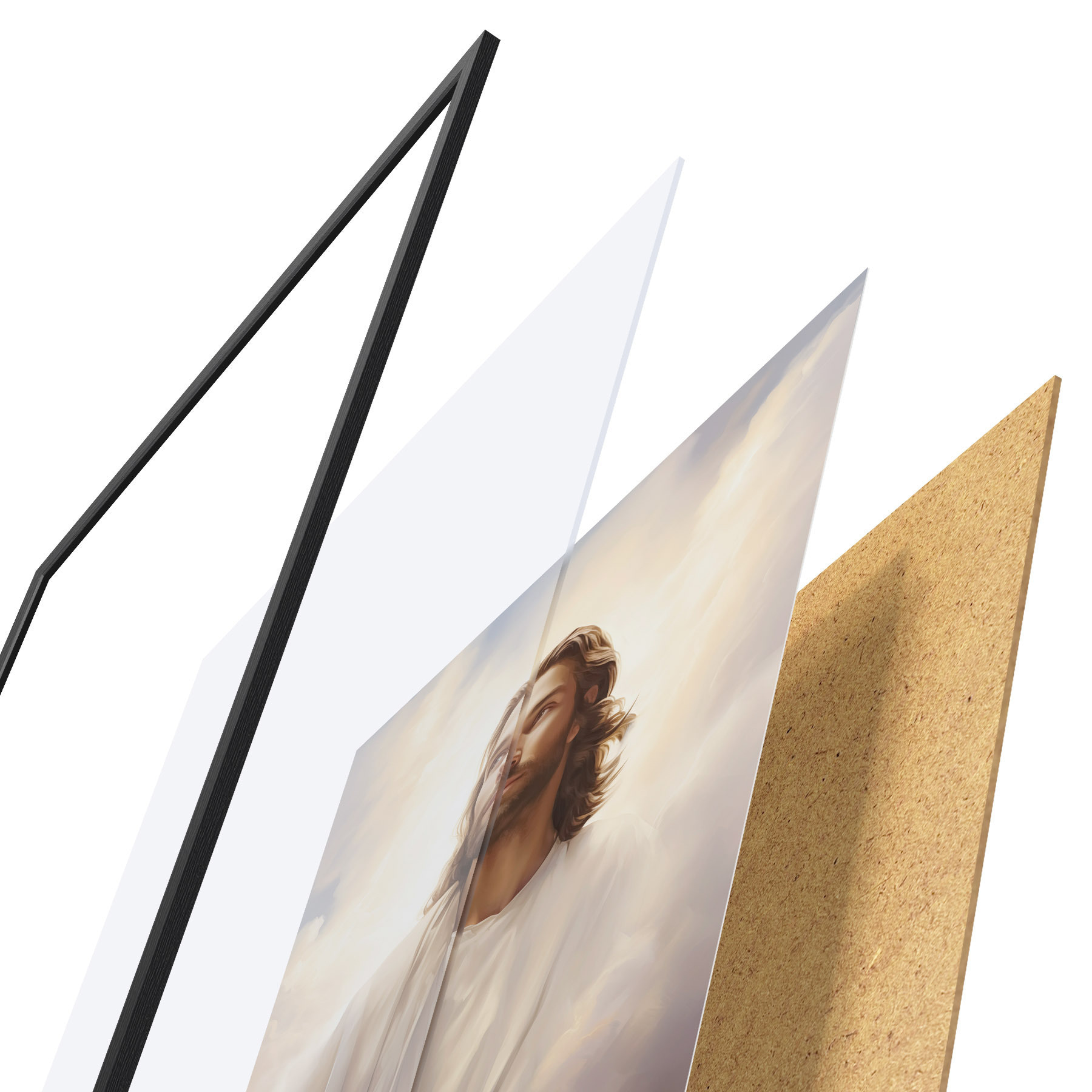 El póster consta de marco, plexiglás, imagen impresa y soporte de aglomerado. El póster puede colgarse inmediatamente en la pared gracias a los soportes de la parte posterior.