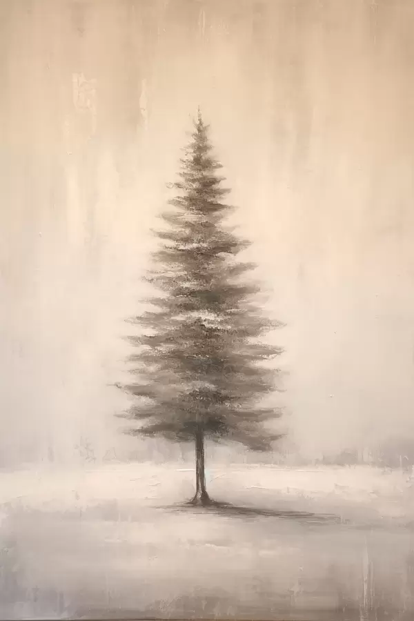 Poster Árbol de Navidad monocromático. Paisaje invernal minimalista. Nr f46465