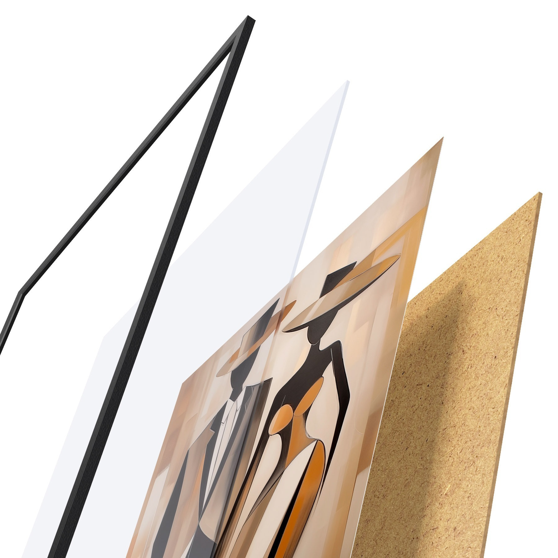 El póster consta de marco, plexiglás, imagen impresa y soporte de aglomerado. El póster puede colgarse inmediatamente en la pared gracias a los soportes de la parte posterior.