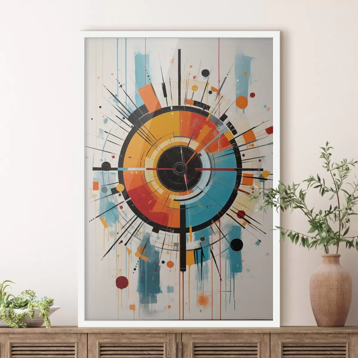 Poster Explosión radial en verde azulado, naranja y negro. Nr f46485