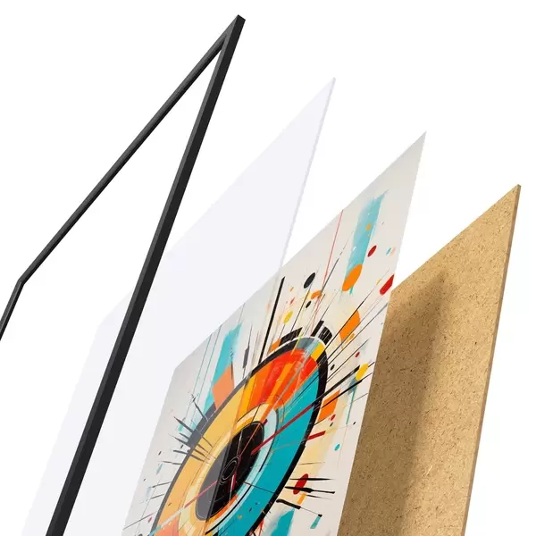 El póster consta de marco, plexiglás, imagen impresa y soporte de aglomerado. El póster puede colgarse inmediatamente en la pared gracias a los soportes de la parte posterior.
