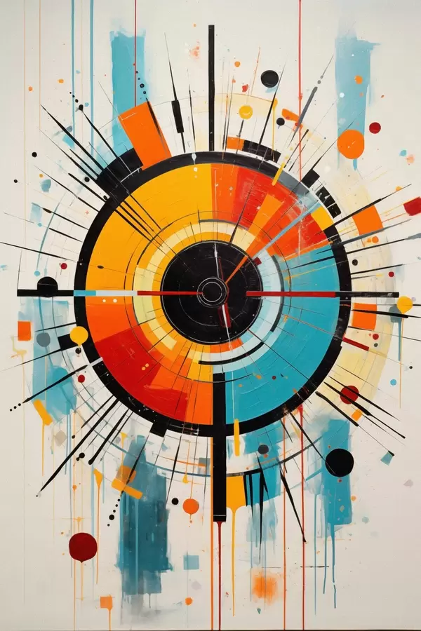 Poster Explosión radial en verde azulado, naranja y negro. Nr f46485