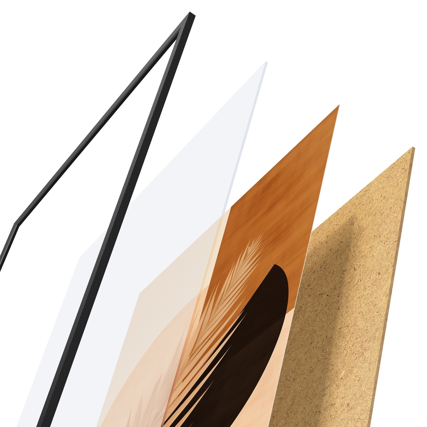 El póster consta de marco, plexiglás, imagen impresa y soporte de aglomerado. El póster puede colgarse inmediatamente en la pared gracias a los soportes de la parte posterior.